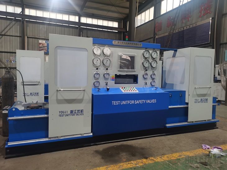 JLA型安全閥性能校驗(yàn)臺(tái)是我公司科技人員按照國家GB/T1 3927—92和ZBJl6006—90有關(guān)標(biāo)準(zhǔn)要求參照國外同類產(chǎn)品之優(yōu)點(diǎn),結(jié)合我們多年生產(chǎn)閥門檢測設(shè)備技術(shù)經(jīng)驗(yàn)基礎(chǔ)上,自行成功研制國內(nèi)首臺(tái)JLA型安全閥性能測試。JLA型閥門液壓試壓機(jī)是我公司在積累多年生產(chǎn)閥門檢測設(shè)備技術(shù)的基礎(chǔ)上按照國家GB/T1 3927 — 92《通用閥門壓力試驗(yàn)》和ZBJl6006-90《閥門的試驗(yàn)與檢測》的標(biāo)準(zhǔn)規(guī)范要求,是公司自主研發(fā)的安全閥試驗(yàn)臺(tái)并擁有國家技術(shù)專利知識(shí)產(chǎn)權(quán),專利號(hào)ZL2016 1 0240324.1。該校驗(yàn)臺(tái)省去了原傳統(tǒng)的大竄容積的高壓畜氣罐,只需配備普通的0.6MPa空壓氣泵氣源。經(jīng)過本機(jī)會(huì)自動(dòng)進(jìn)行調(diào)節(jié)0.6-32.0MPa氣體介質(zhì)試驗(yàn)壓力。適用于公稱通徑DNl 5~300mm安全閥的整定、啟閉、回座壓